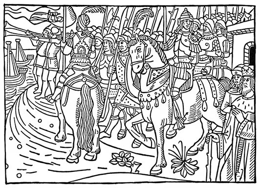 Mais quelle place ils occupent dans le cortège des Victoires ! Son page, Louis de Coûtes, a 14 ans ; Guy de Laval, qui sera fait comte à Reims, a 20 ans, son frère André 18 ans — à douze il avait été fait chevalier sur le champ de bataille ! — le duc René, 20 ans ; le duc d’Alençon, 23 ; Dunois, 26 ; Charles VII lui-même n’a pas 27 ans !