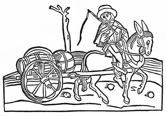 Il se cache à cette heure, inquiet dans un château solitaire, guettant un geste pacifique du puissant duc de Bourgogne, qui là-bas dans ses Flandres prépare à Bruges ses noces et rumine le lancement orgueilleux de sa Toison d’Or. Il a fait passer, justement par Domrémy, sur la route ferrée qui longe la maison de Jeanne, le lourd convoi, escorté à grande compagnie, de ses richesses. Quinze chariots remplis de tapisseries, harnais de joute 247et joyaux, vingt-trois chariots de dames
