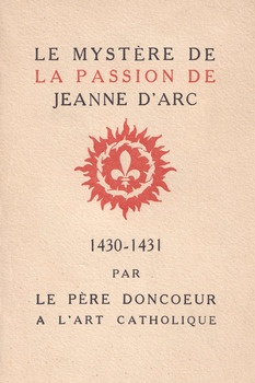 Le mystère de la Passion de Jeanne d’Arc — 1430-1431 — [VIIIe carnet de route] par le père Doncœur à l’Art catholique. [Dernière page] Achevé d’imprimer le 1er décembre 1430 fête de S. André, apôtre et martyre, sur les presses de l’Art catholique, 6, place Saint-Sulpice à Paris. F. Paillart, Abbeville.